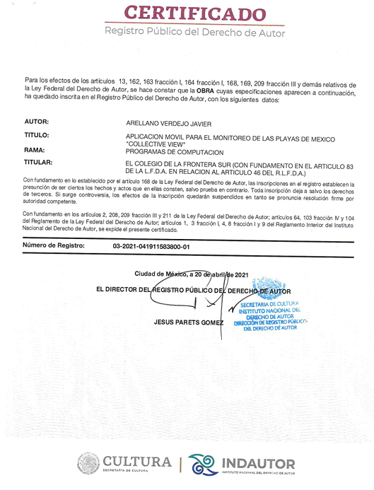 Certificado de datos utilizados en el proyecto de Collective View.